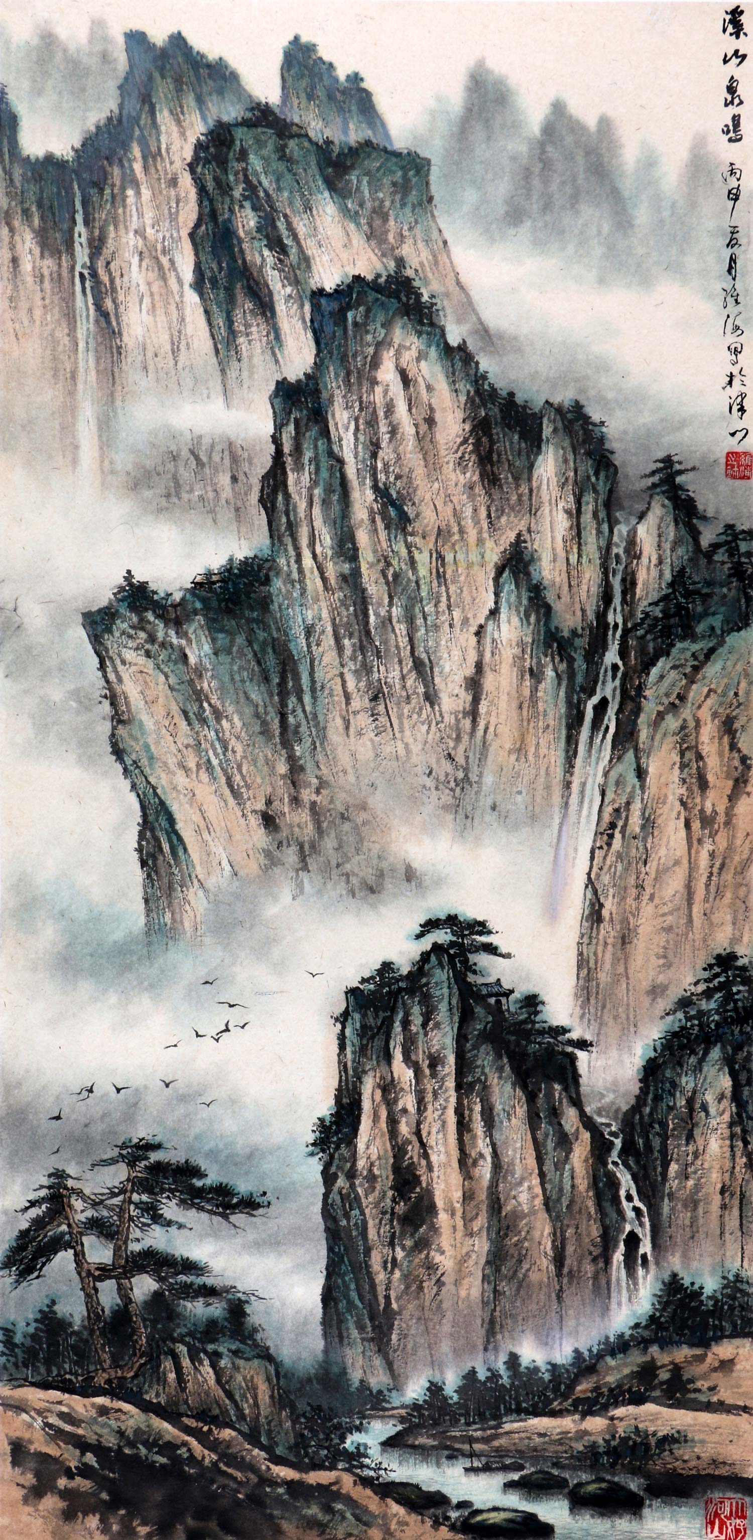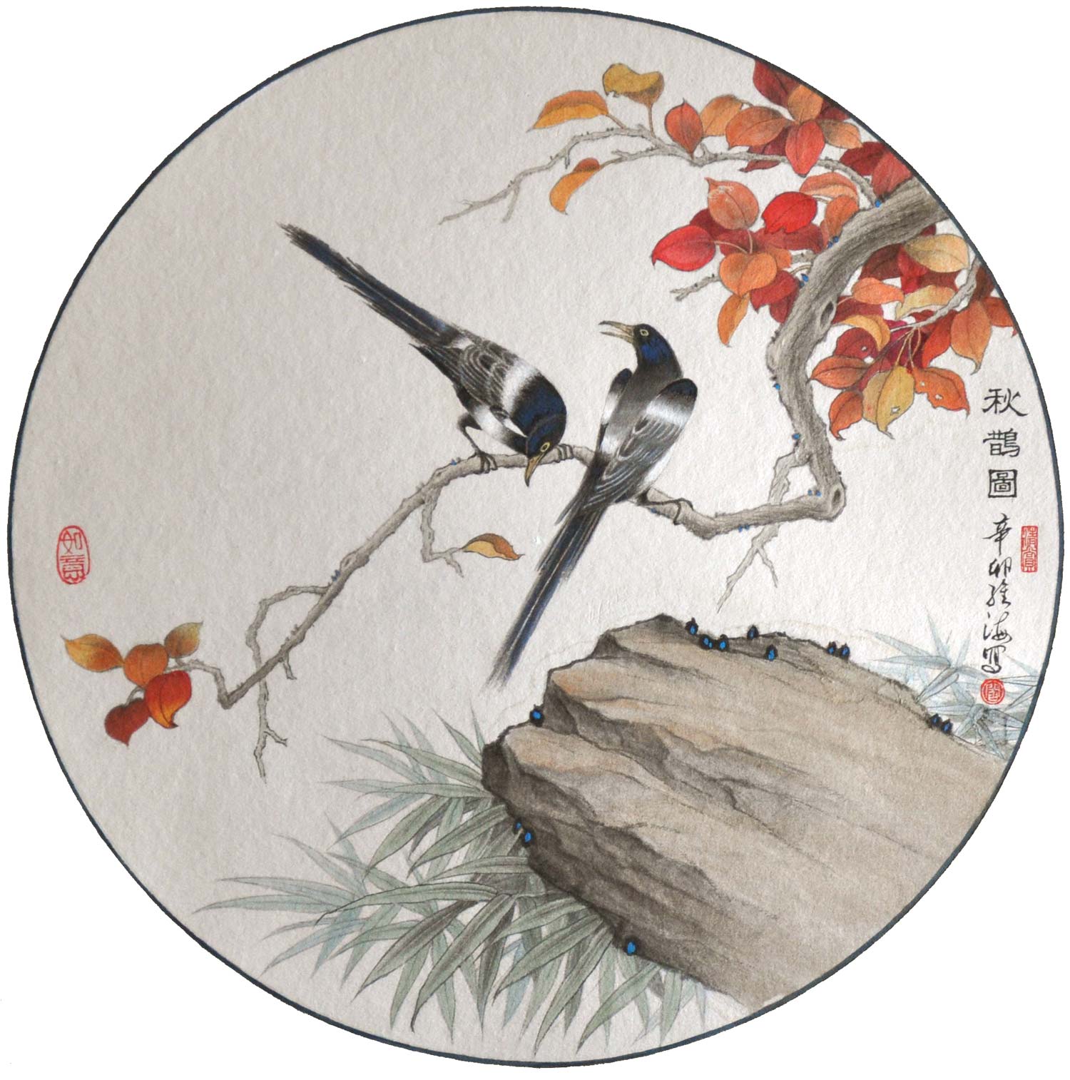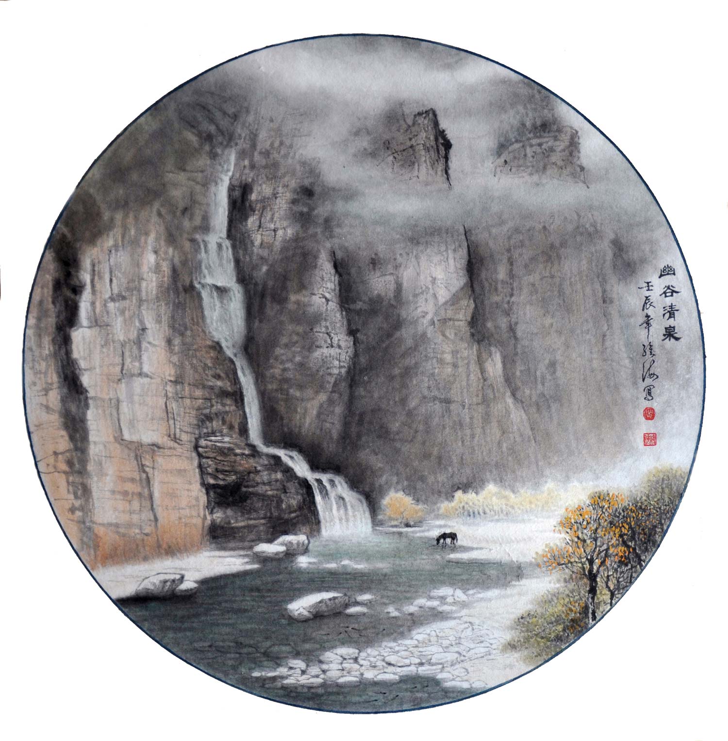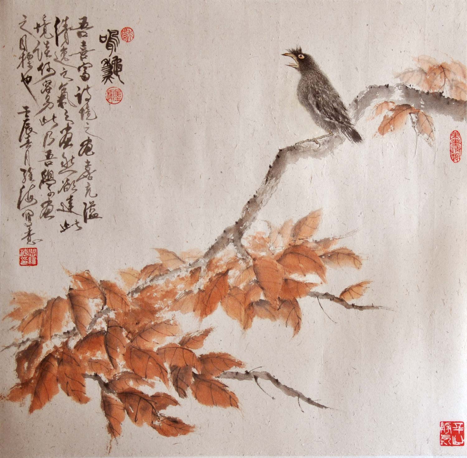 觀其最近的幾幅作品,無不顯現出其重韻注情的繪畫風格來。尤是山水畫《幽谷清泉》覺得耳目一新,不同于其它的山水畫,有自己的獨特風格。畫面中呈現出一種強烈的時代感,似有一種真實的意境。其畫面烘染的真實意境氣氛很濃重,給人一種富于真實感的藝術感染力。花鳥畫《鳴秋》也頗具新意,其八哥與紅葉、枝干的畫法構成了一種虛幻朦朧之感,從而有了一絲朦朧的意境美。
