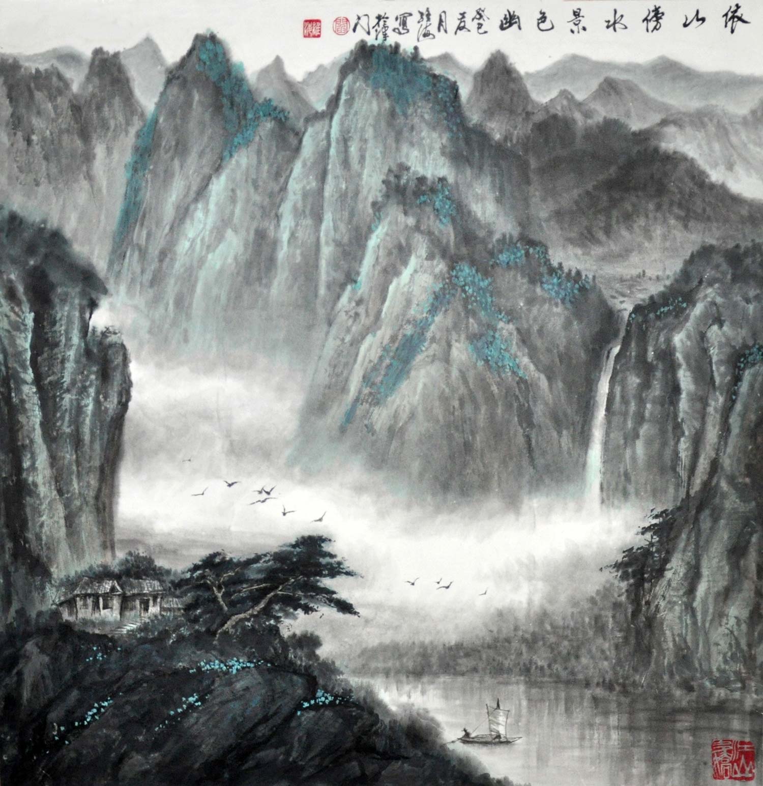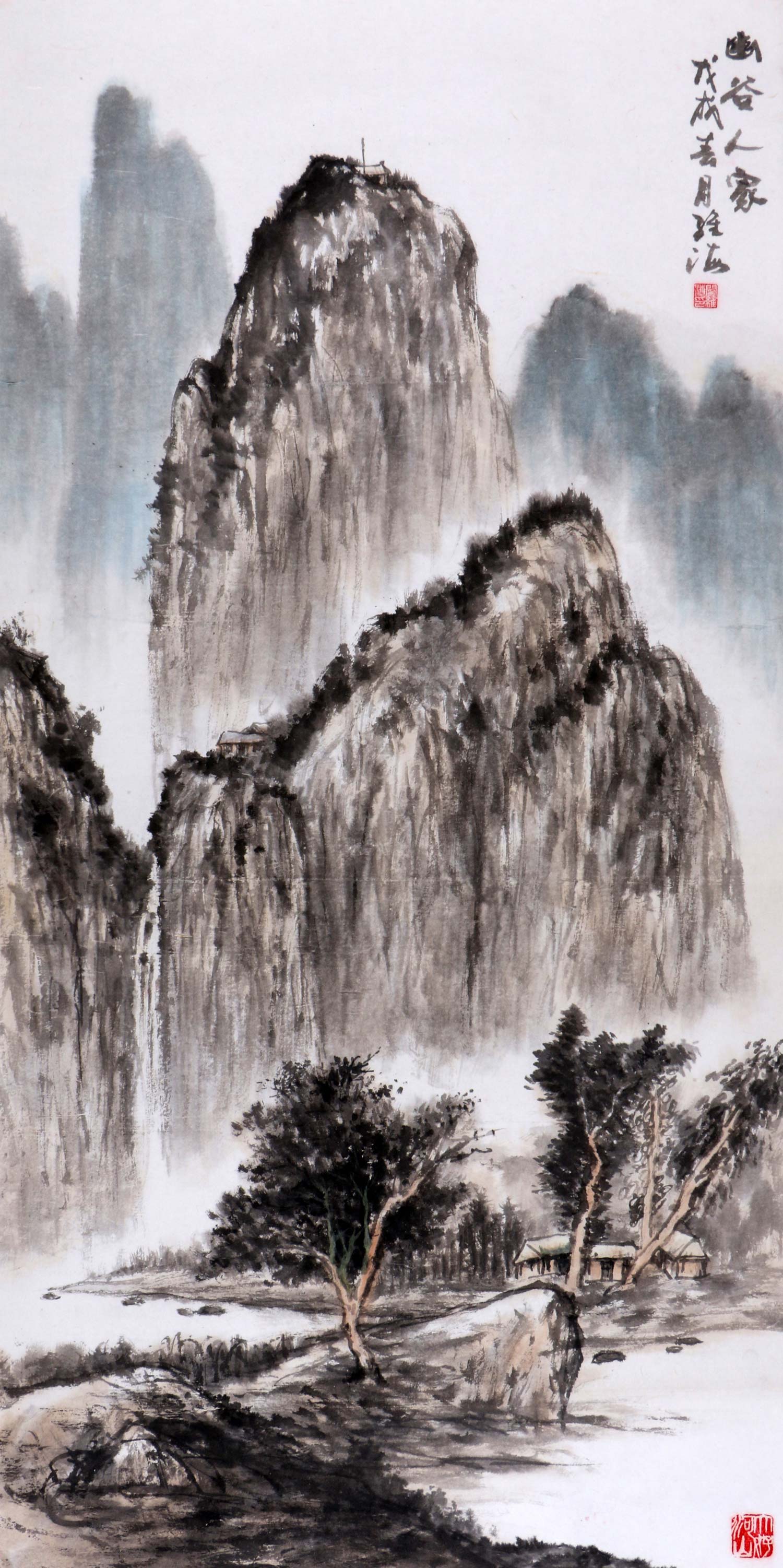 讀閻維海先生的畫,特別是山水畫,給人印象最深的地方就是他對空白的處理。留白在國畫技法上很重要,沒有扎實的基本功,只能心到手不到。因此表 現在畫面上的那空白處也只是空白,絕對構不成景物,當然更不會給人以印象。讀閻維海先生的山水畫則不然,他用空白處表現云,那云就有飄渺流蕩的氣韻;他用 空白處表現水,耳畔就仿佛有潺潺流水的聲音,讓人身心會慢慢地靜下來,不知不覺地融入畫家營造的意境中。閻維海先生的山水畫給人另一個印象就是山水的氣 勢。他把西方繪畫技法移用于山水畫上來畫山,輕重濃淡,知黑守白處運用自如,恰到好處又相得益彰,畫面層次韻律分明,山之雄渾壯麗,高竣蒼勁躍然紙上 。