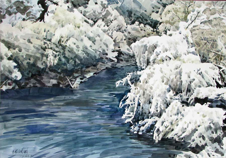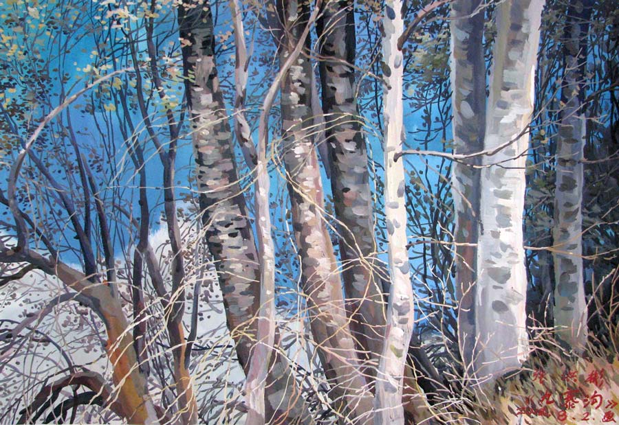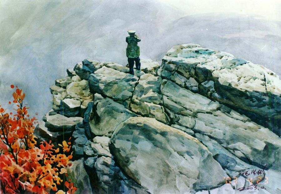 水彩畫《獨(dú)立寒秋》107×75cm 2003年