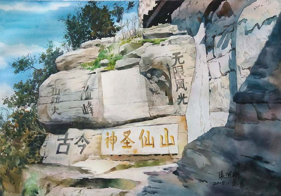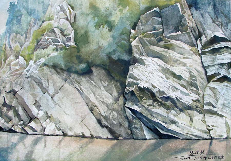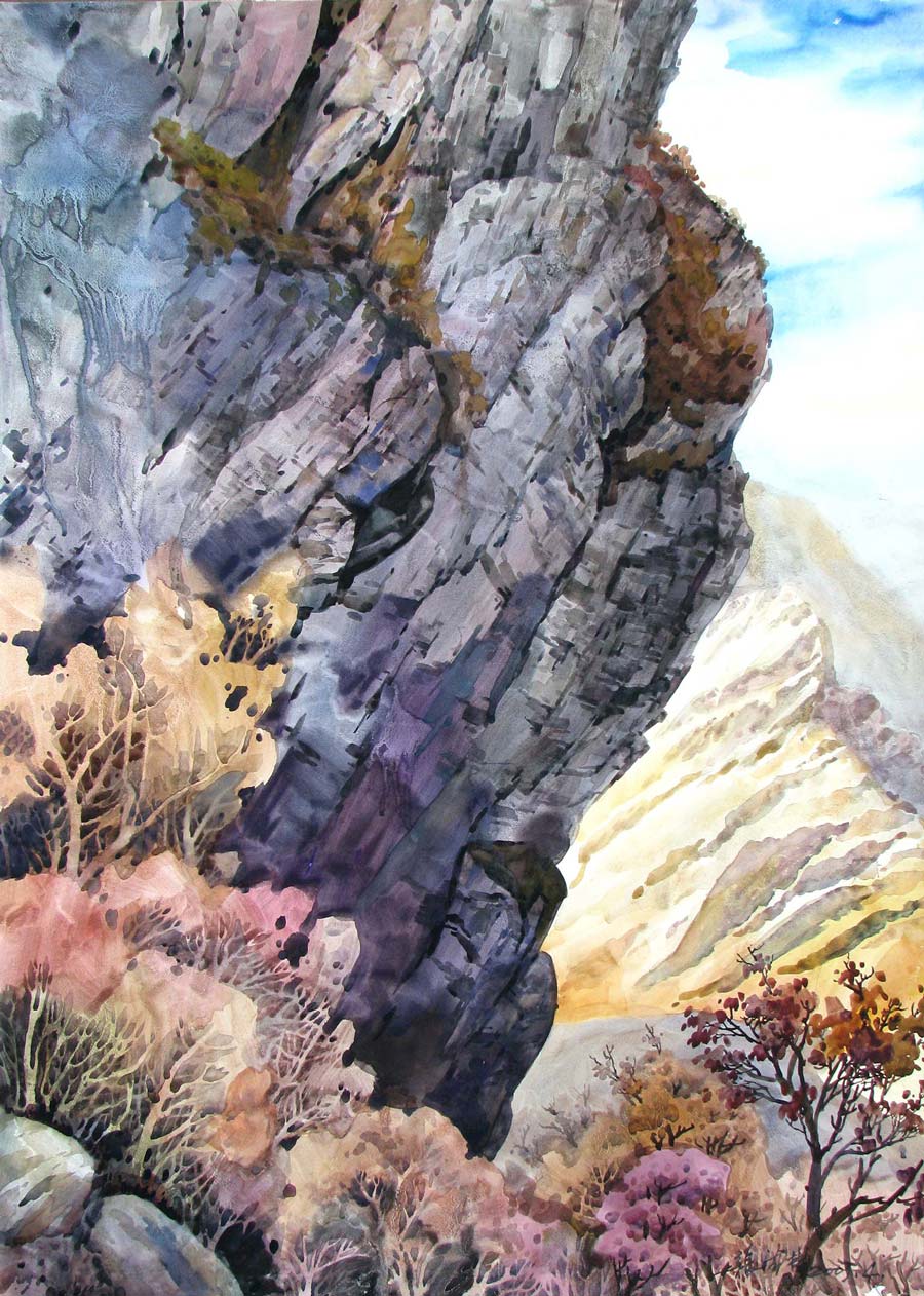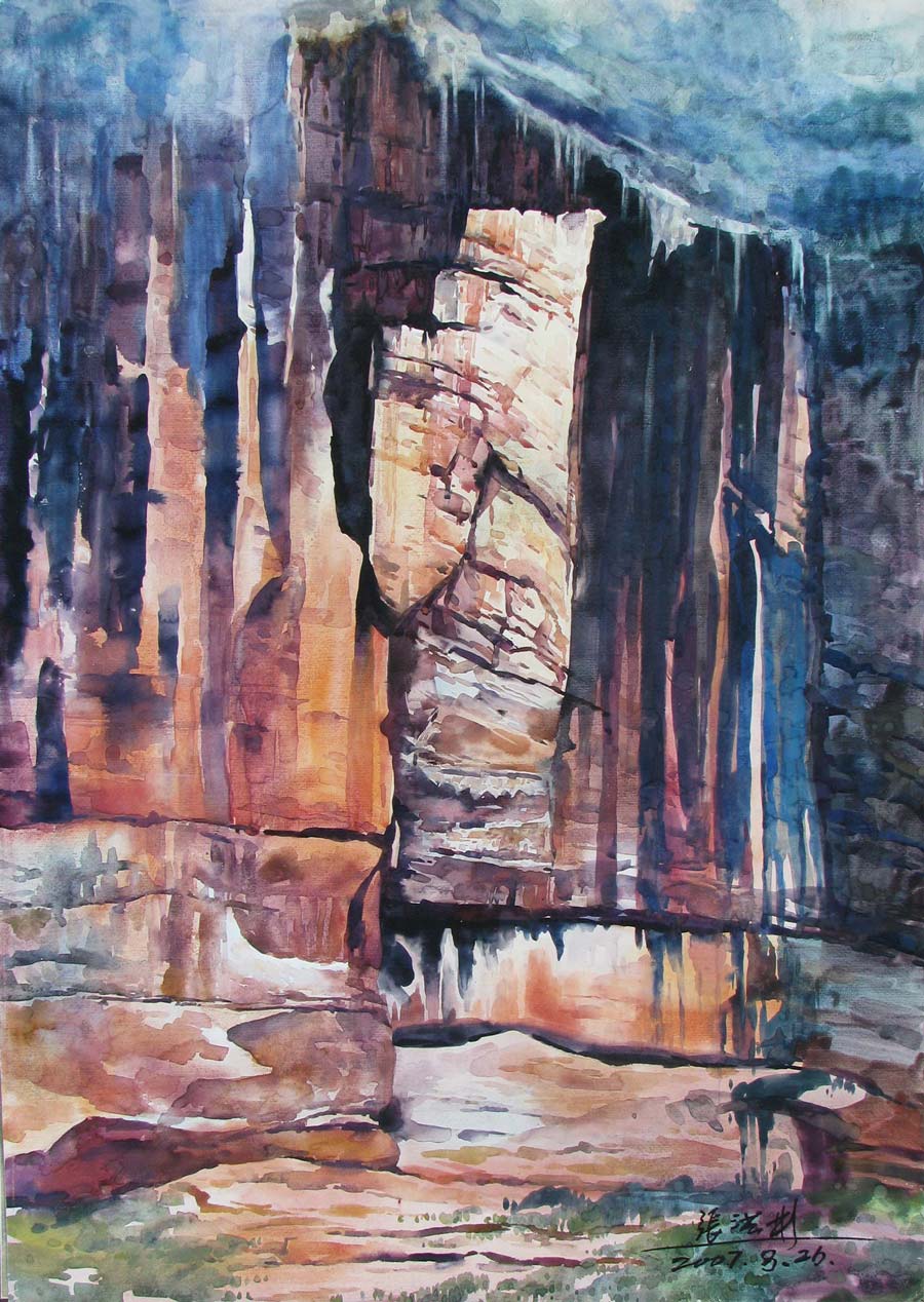 水彩畫《赤水紅巖英雄魂》75×107cm 2007年