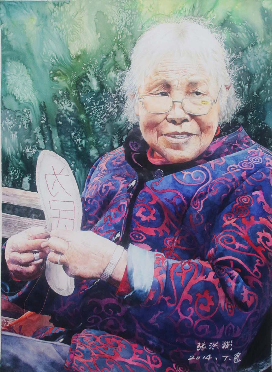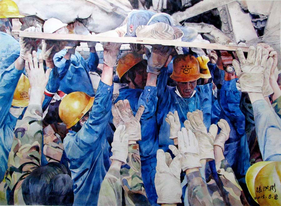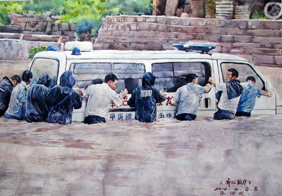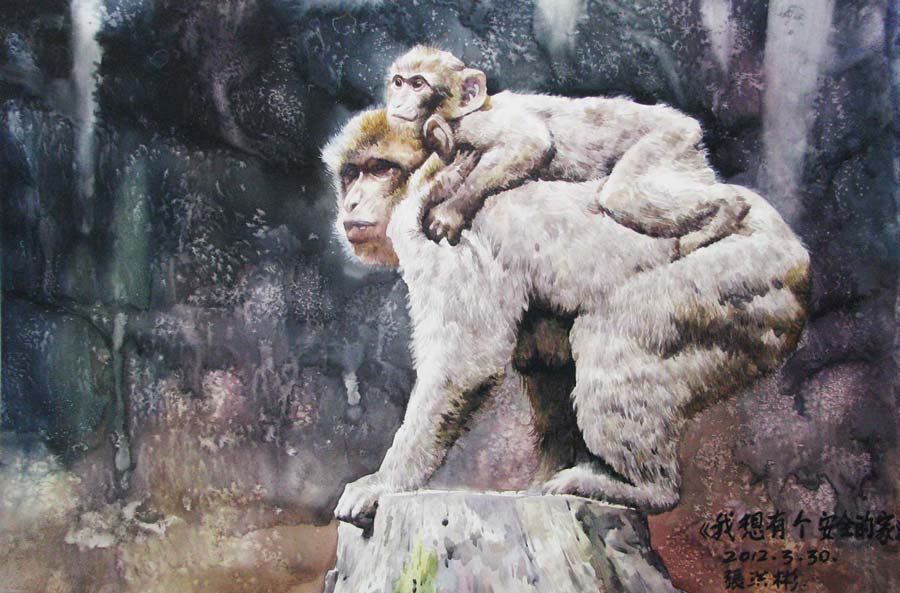 水彩《我想有個(gè)安全的家》76×53cm 2012年