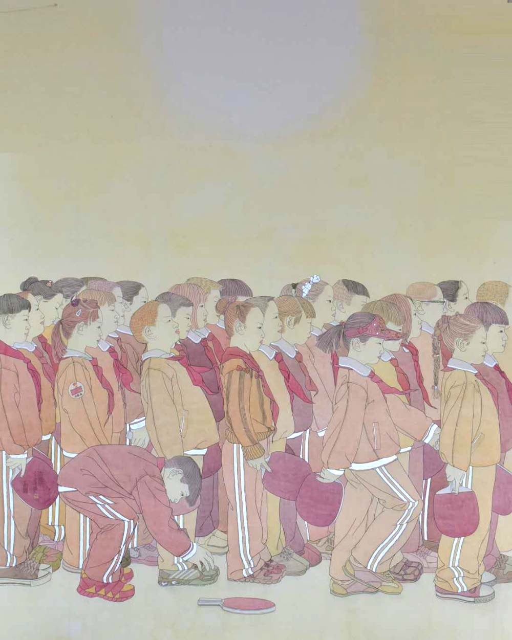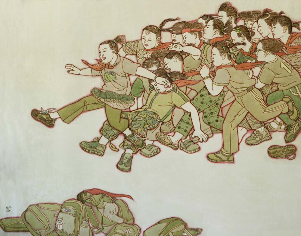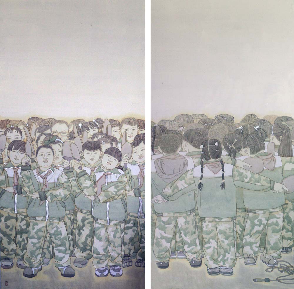 內(nèi)蒙的畫家,大多取材于草原,畫草原、畫生活在草原上的牧民。她沒有盲目跟風,她雖然生活在內(nèi)蒙古卻不了解草原,對草原、對牧民沒體驗沒有更深刻的情感。她關(guān)注她的學(xué)生。她熟悉他們了解他們,關(guān)愛他們。因此她的“種子系列”中的孩子們單純、可愛、一派天真。絲毫沒有死搬照片的做作、生硬和概念。畫中造型稚拙,刻畫細膩,畫面唯美。從她的作品中能讀出她對孩子們的那份情感和愛。