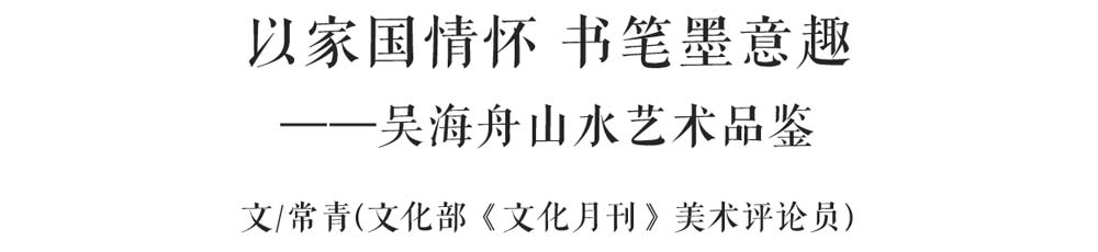 “家國情懷”是無數藝術家抒發個人藝術情感的精神家園,更是他們進行藝術創作的源頭活水。這來源于他們內心對故土之情的不離不棄,也來源于他們身體對草木之戀的難舍難分。借此來自覺地生發創作主題,留下了許多打動人心的藝術作品。吳海舟的山水藝術創作,多寄情于田園山水的描繪,不追求氣吞山河般的宏大場面,山野鄉情、煙雨人家、小橋流水,于小景中見天地,于筆墨中訴真情。而深喻其內的,正是一種難能可貴的“家國之思”。
