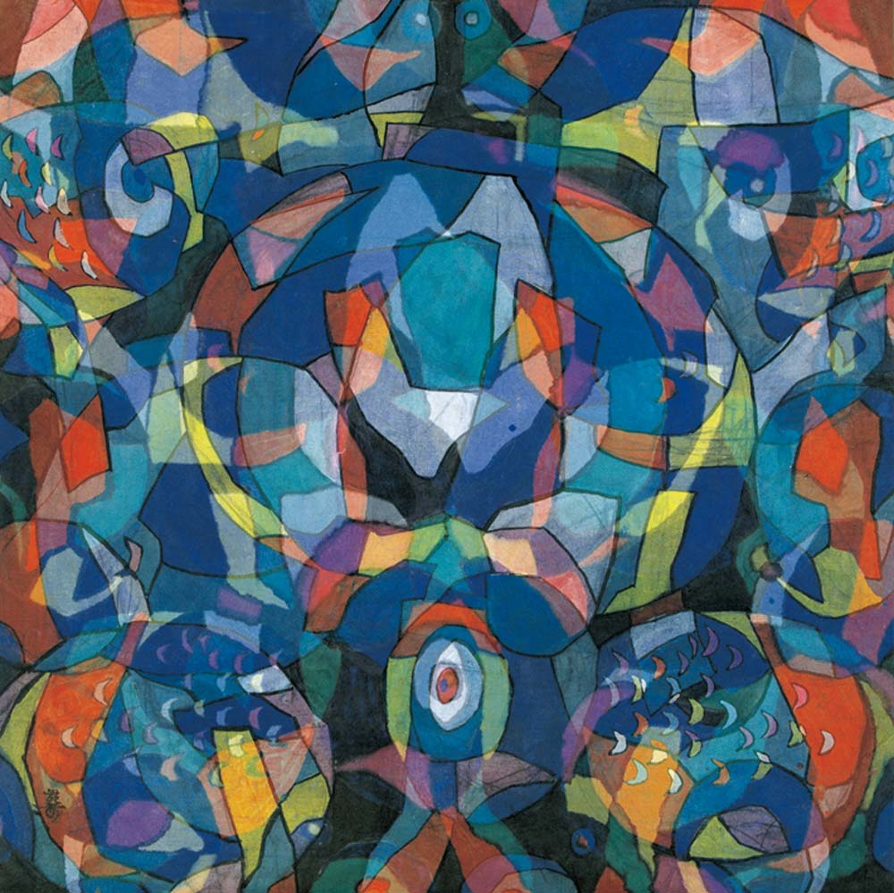 穆益林先生能在傳承古法基礎上,盡其聰明才智把帛畫演變成會產生奇特色變效果的現代帛畫,很重要的原因是他居住在各種文化碰撞交織的上海,大半生受到了海納百川、兼容并蓄的海派文化熏陶。他對中外藝術和美術理論博采眾長細細咀嚼,在上海大學開設過西方繪畫、日本繪畫、中外剪紙、抽象畫審美鑒賞和對潘天壽、黃賓虹研究等課程,在其他大學教授過造型基礎、色彩學、透視學,帶領學生搞了不少博物館的展陳設計,任過上海世博會中國館展陳設計首稿方案的總設計師,也任過上世紀八、九十年代上海搪瓷行業的副總設計師,是搪瓷設計的領軍人物。開闊的國際視野、廣博的藝術修養和豐富的藝術實踐為他帛畫創作的獨辟蹊徑奠定了成功的基礎。